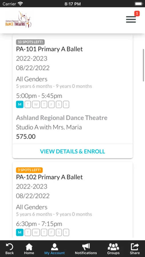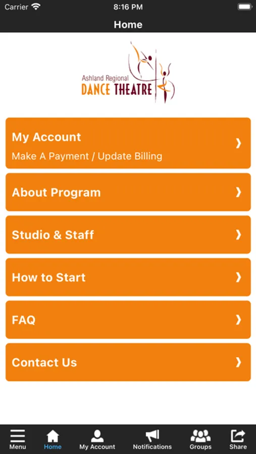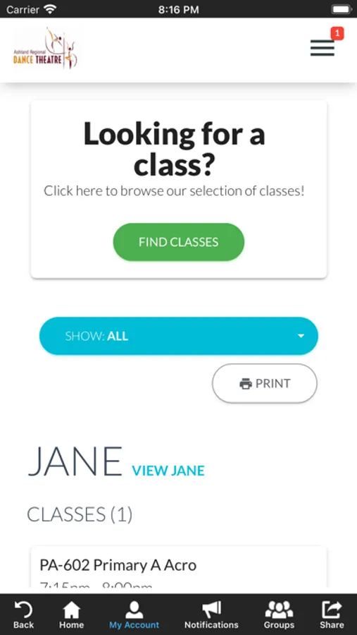 The ARDT app allows you to manage your account with ease, register for classes, and special events. You'll also receive important notifications about class changes, closings, registration openings, special announcements, and upcoming events.