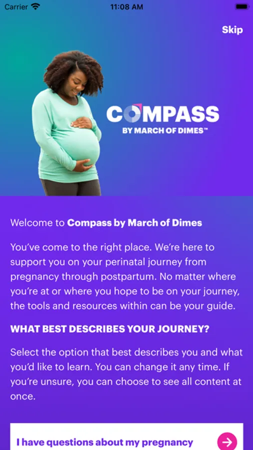 Compass by March of Dimes supports the journey of parents from pregnancy through postpartum by providing answers, resources, and compassion at every step. Use helpful tools like journals and trackers, connect with other parents, and access glossaries, articles fact sheets and more that can help keep you informed along the way.