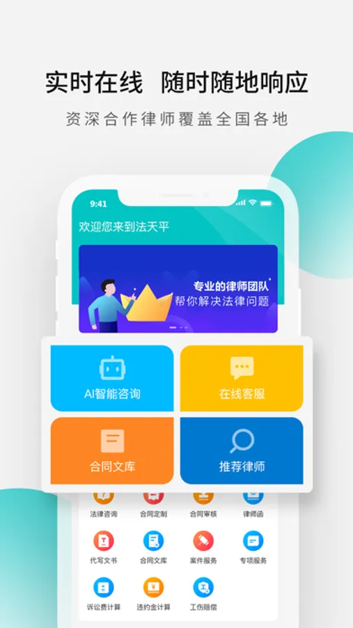 *法天平拥有高标准服务体系,并且自主研发行业领先的智慧法务平台“法天平”App,将互联网思维融入法律服务,突破传统法律服务行业的桎梏,实现法律服务实时在线,随时随地响应与满足客户的法律事务服务需求。