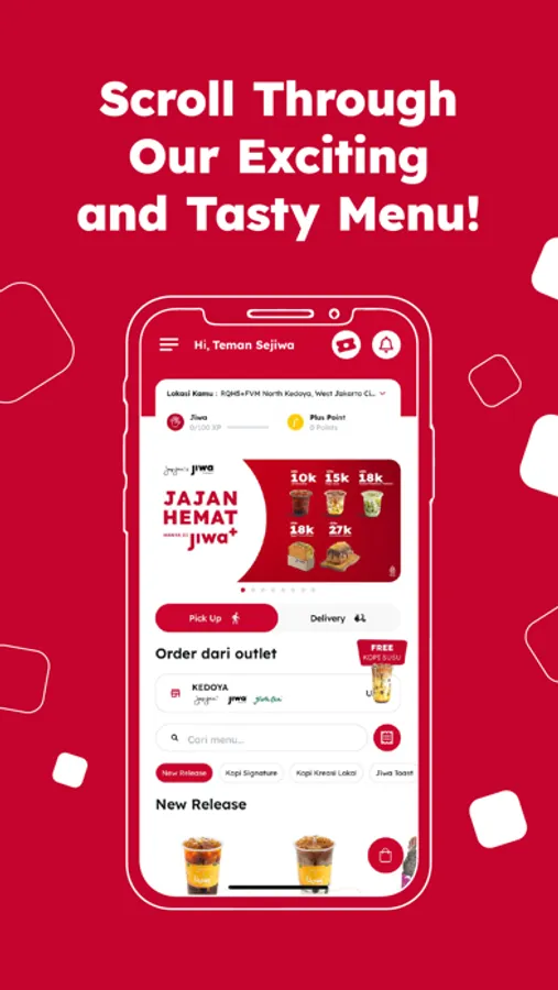 Disini kamu bisa melakukan Pick Up atau Delivery dengan diskon promo yang bikin kamu makin sayang sama JIWA+