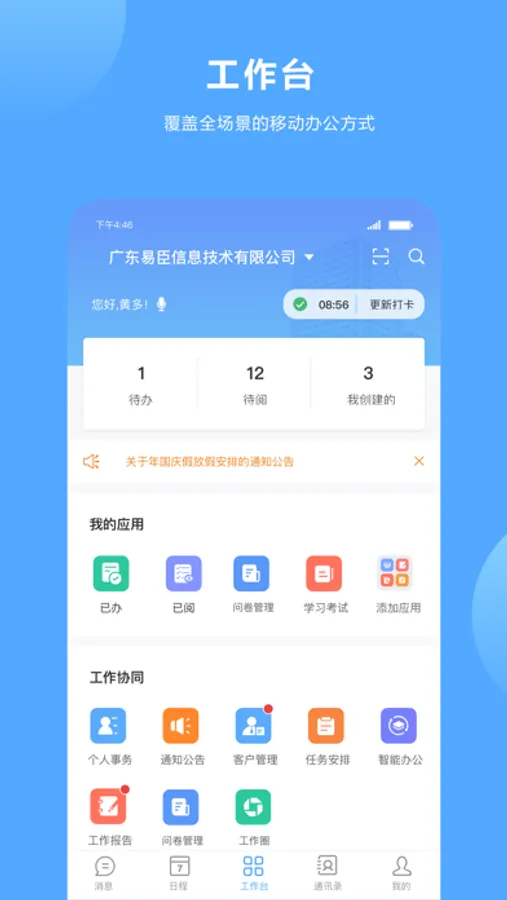 产品中心聚焦政务办公、智慧协同、信创OA、门户集成、移动办公、智能流程等,让工作更便捷、更高效、更智慧,助力客户打造企业办公新生态。