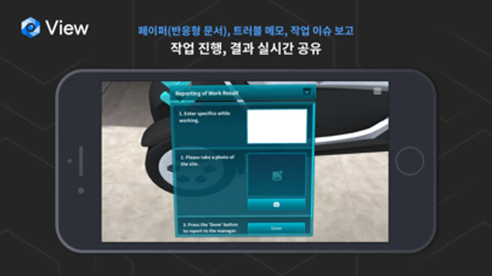 - 작업자에게 할당된 업무 목록을 현장에서 즉시 조회하고 AR 작업 지침을 따라 작업을 수행할 수 있습니다.