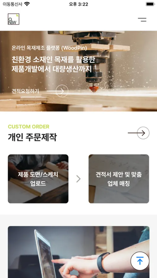 안녕하세요, 우드핀(WOOPIN)은 목재를 활용한 제품 제작과 개발을 연계시켜 드리는 플래폼 서비스입니다,