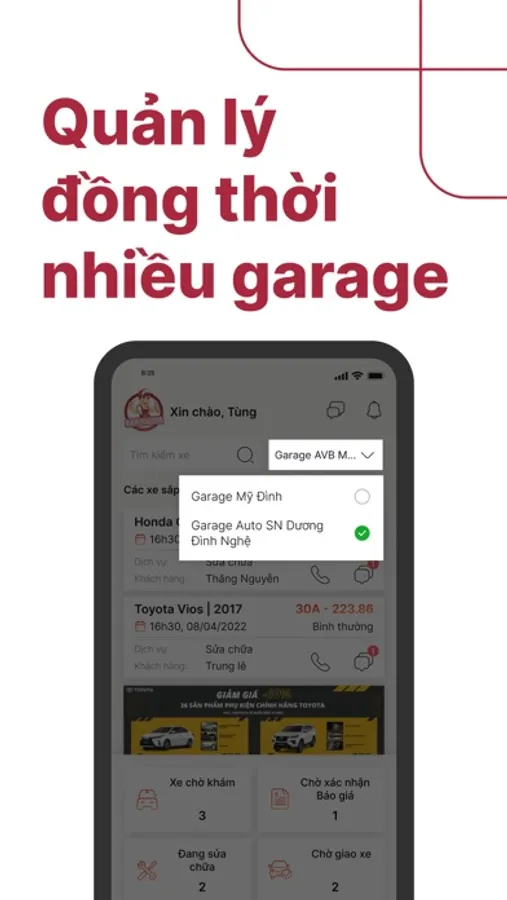 Ứng dụng dành riêng cho các Garage hợp tác với Car Doctor với các tính năng ưu việt