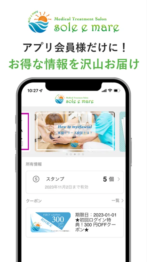 アプリをインストールしていただくことにより、ソルエマーレ鍼灸整体治療院をより便利に身近にご利用していただけます。