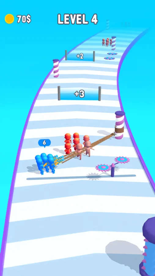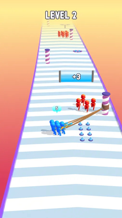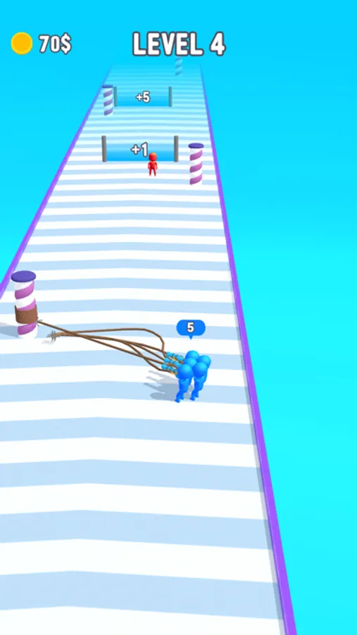 Throw ropes to catch poles and pull your gang! Watch out for the obstacles. Try to add more allies to your gang and destroy your enemies with the ropes. On each level it will be more challenging!