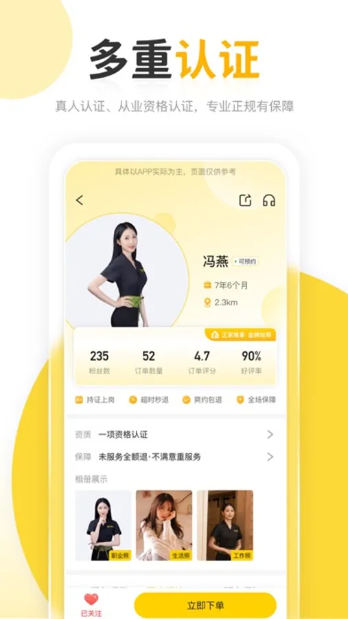 4、认证技师:所有技师通过头像认证,通过真人实拍