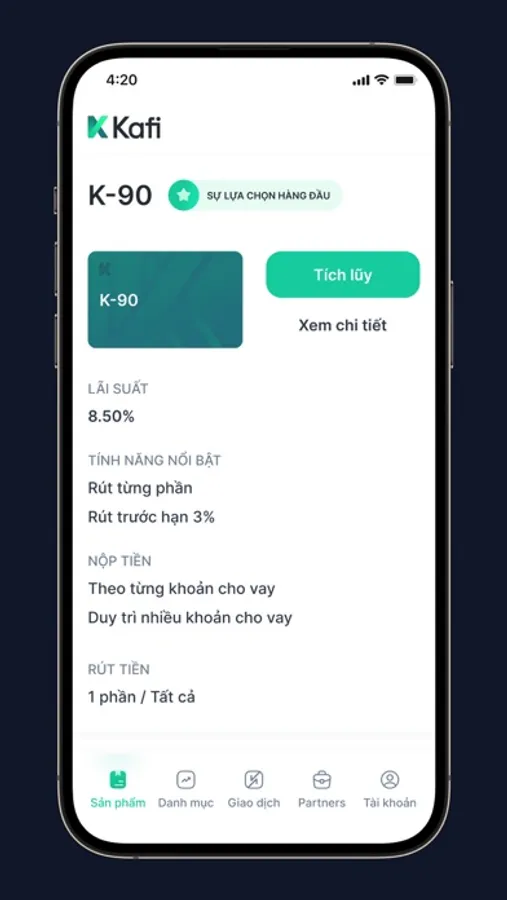 Kafi Wealth - Tích lũy linh hoạt. Sinh lợi mỗi ngày