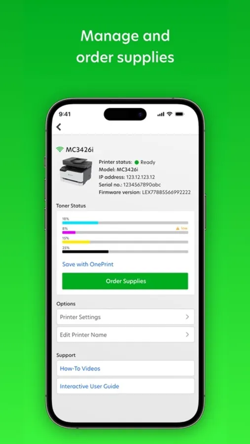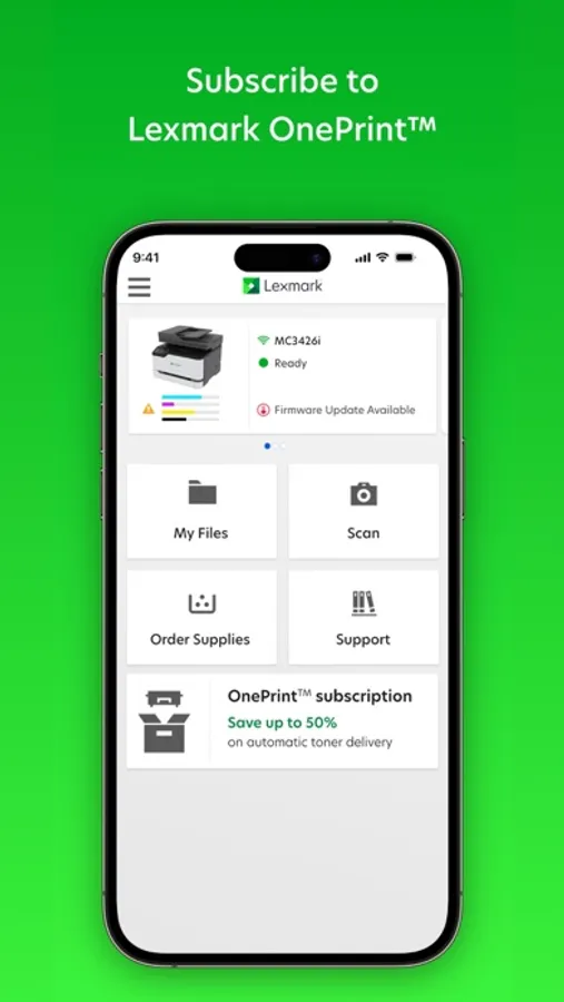 Simplify printer setup, manage and order supplies or sign up for Lexmark OnePrint™ subscription on-the-go.