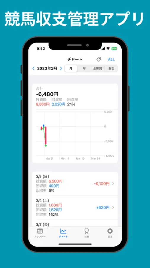 競馬収支は、競馬ファンのための収支管理アプリです。このアプリを使えば、投資額、回収額、損失を簡単に記録し、リアルタイムで回収率が計算できます。