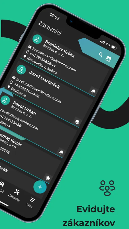Vďaka tejto funkcionalite dokážete mať pod kontrolou vašich zákazníkov, ktorí sú v systéme základná stavebná jednotka všetkých údajov. Pod zákazníkom viete evidovať množstvo ďalších potrebných údajov zo servisného sveta, ako sú napríklad zákazky, vozidlá, kalendárové udalosti a mnoho ďalšieho.