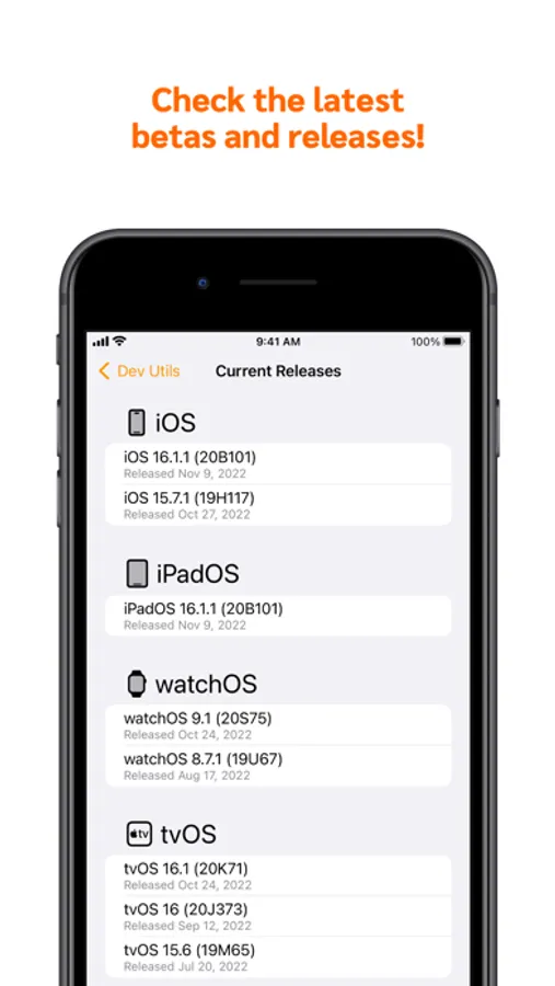 - Get notified about the latest betas and full releases of Apple's operating systems (iOS, iPadOS, watchOS, and tvOS) and Xcode.