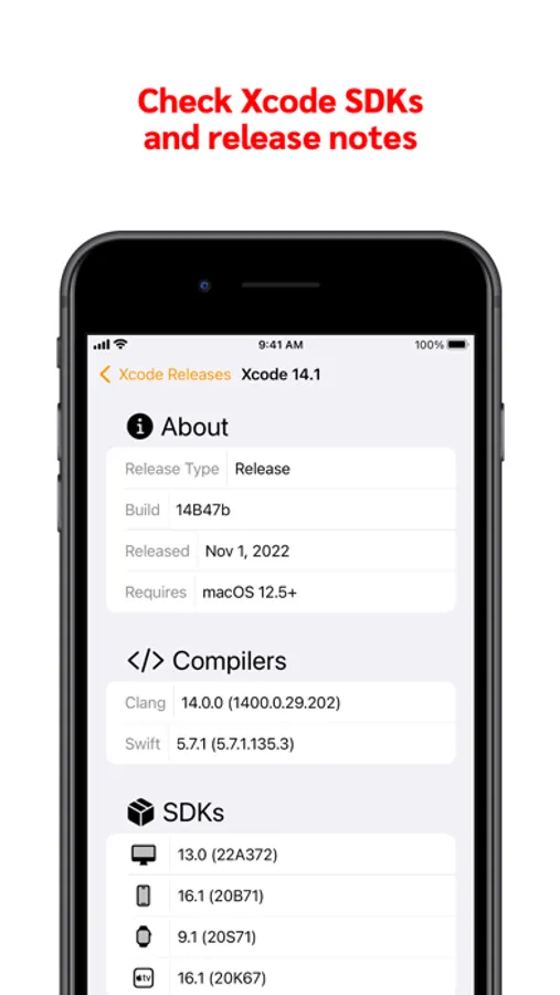 - Easily check release notes for the latest Xcode. See the macOS requirements and view included SDKs for iOS, macOS, watchOS, and tvOS.
