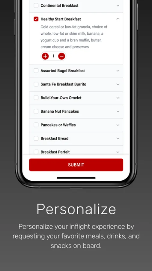 - Personalize your inflight experience by requesting your favorite meals, drinks, and snacks on board