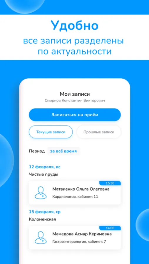 — Записывайтесь на прием к врачу, получайте медицинские данные после приема и напоминания о предстоящем визите.