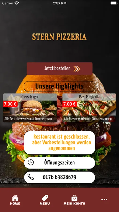 Herzlich Willkomen bei Stern Pizzaria - Burger in Bergheim. Wir bedienen unsere Kunden mit Burger, Pizza, Pasta, Tacos Speisen und machen das seit mehreren Jahren aus Leidenschaft. Wir freuen uns immer wieder neue Kunden unsere Herkunft näher zubringen und möchten ihnen die Möglichkeit geben, ihre Bestellung unkompliziert und total einfach abzugeben. Aus diesem Grund, möchte wir ihnen unsere neue App und unseren Online Shop vorstellen, mit dem Sie problemlos über Paypal, Bar und Kreditkarte zahlen können.