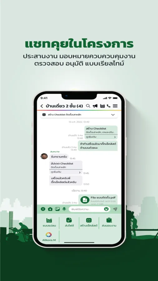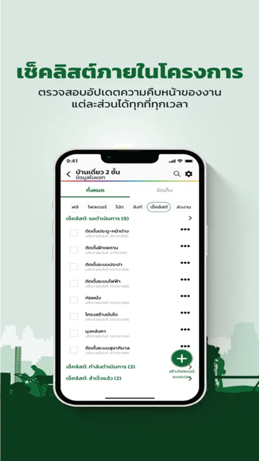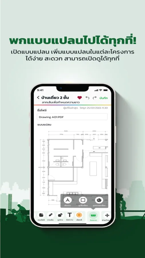 แอปพลิเคชันที่ช่วยให้การบริหารไซต์งานของคุณเป็นเรื่องง่าย เริ่มตั้งแต่ติดตามงานคนในทีมได้แบบเรียลไทม์ สร้างเอกสารส่งงวดงาน วัดขนาดแบบแปลน สามารถเข้าถึงได้ทุกที่ทุกเวลาผ่านโทรศัพท์มือถือ หรือแท็บเล็ต