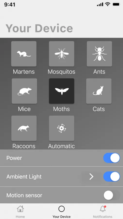 The IRepell App allows to connect your phone with the Irepell device . With the APP you can change the mode of the device and also you get notifications of the device status on your phone. Also the temperature and humidity of the device sensor is show on the app.