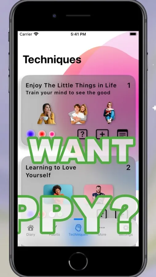 In addition, iHappy provides you a set of methods for personal growth and the development of positive thinking.