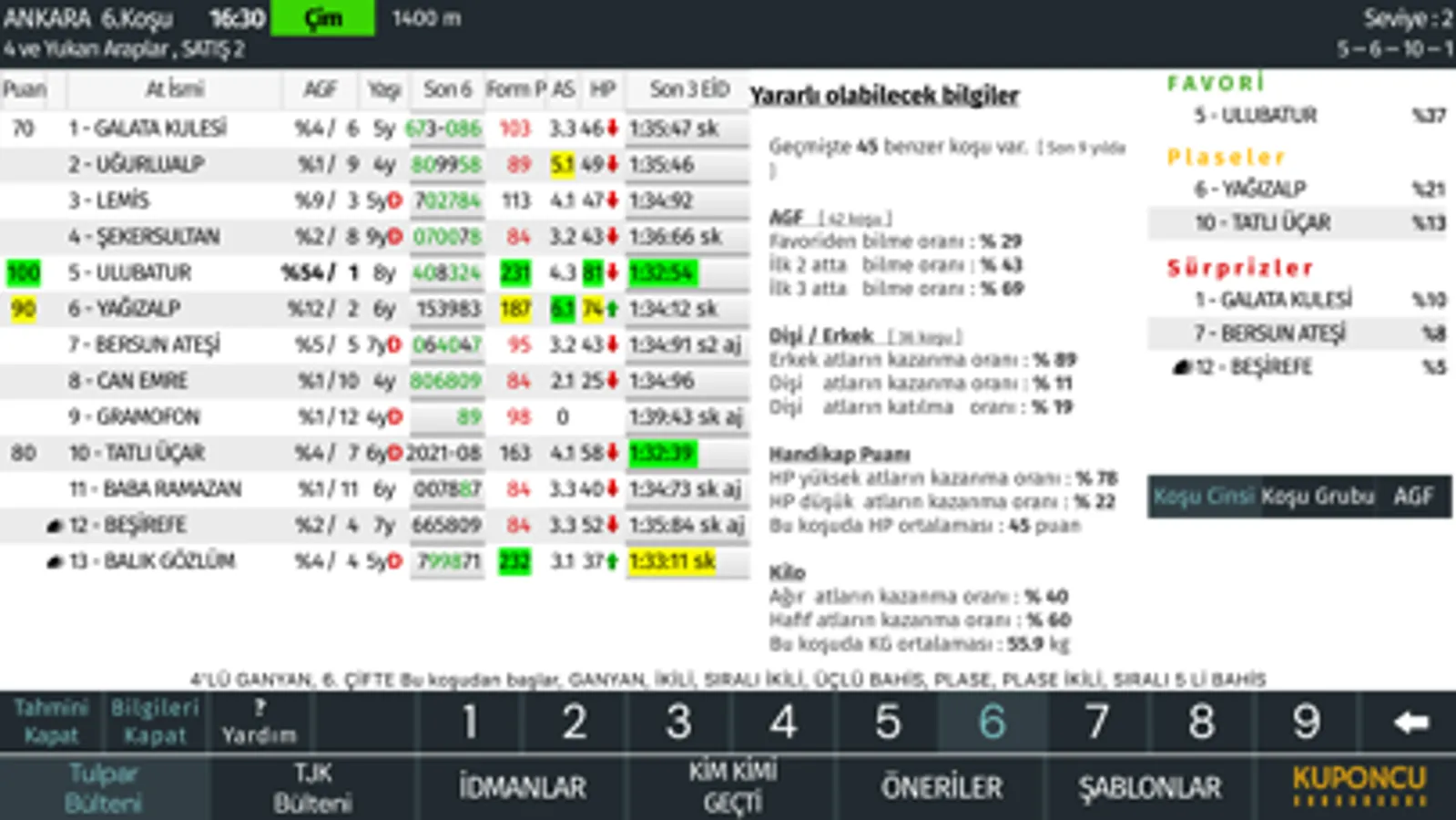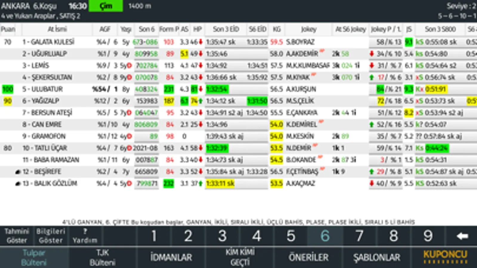 Koşudan at çıktığında, pist veya jokey değiştiğinde bülten ve tahminler değişebilir.