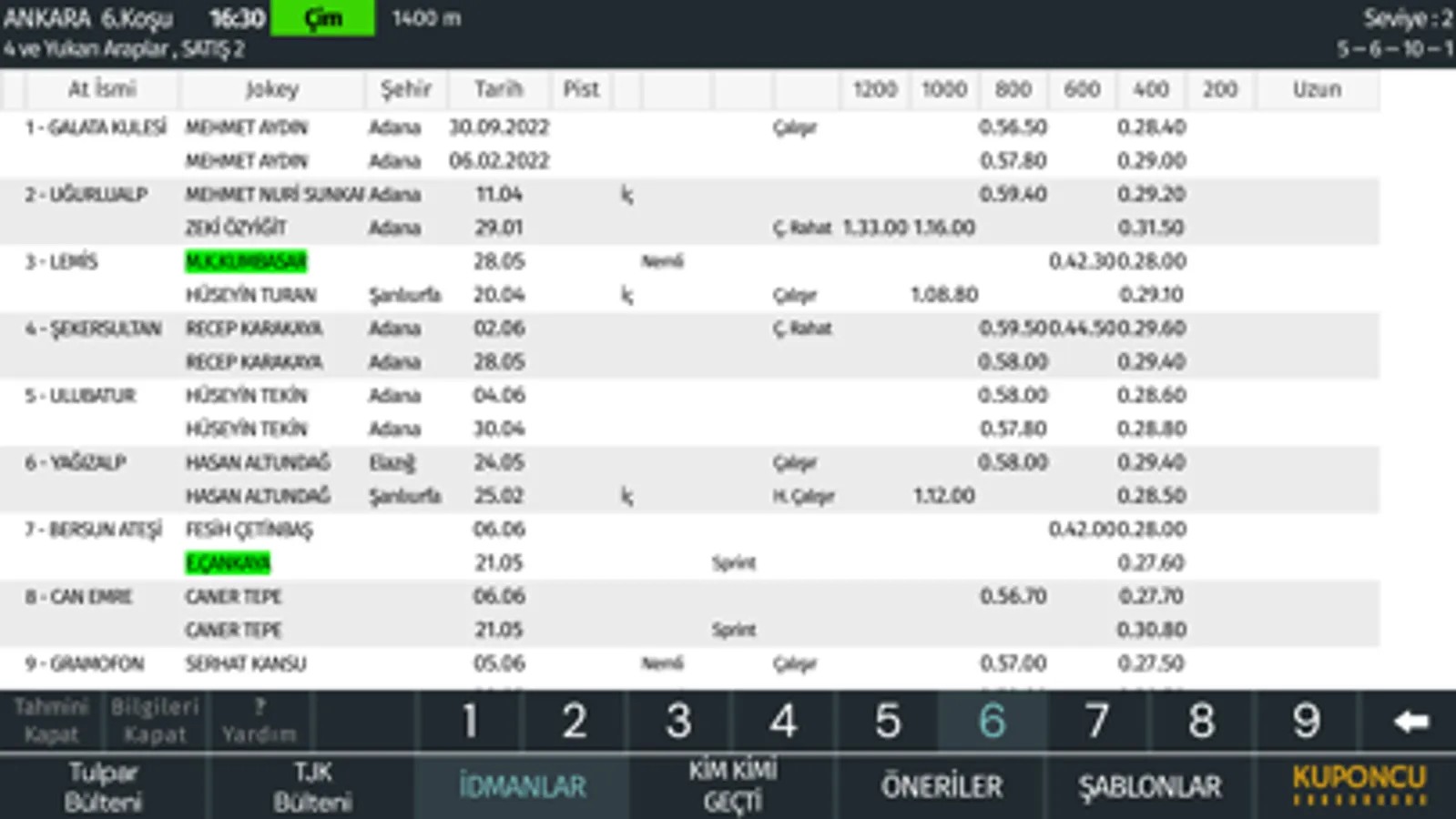 Son 6 koşuda hangi zorlukta koşular koşmuş ? Kaç atta kaçıncı olmuş ?