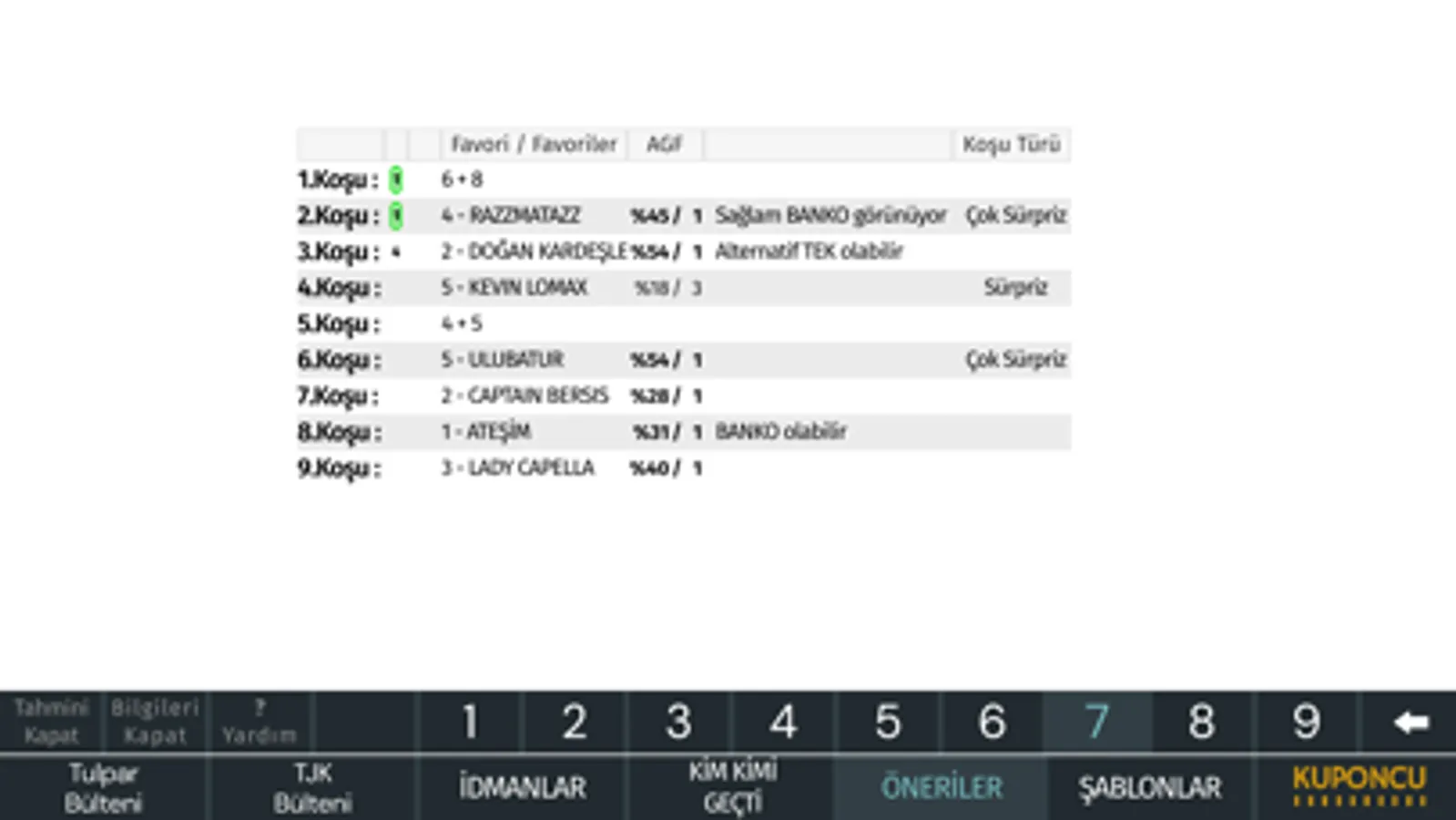 ÖNERİLER o günkü koşuların / tahminlerin özetidir.