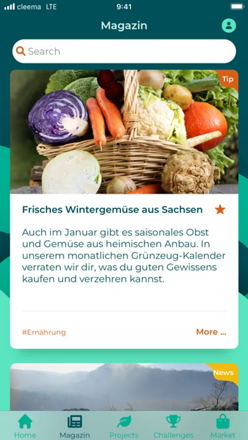 In your profile, you can make personal settings and view your connections in the community and favorite content. You can find out everything about the cleema team, partnerships and offers for a climate-friendly everyday life.