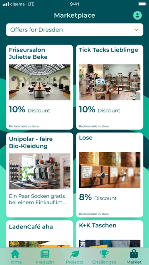 In the marketplace you can get offers from local partners with sustainable products and services.