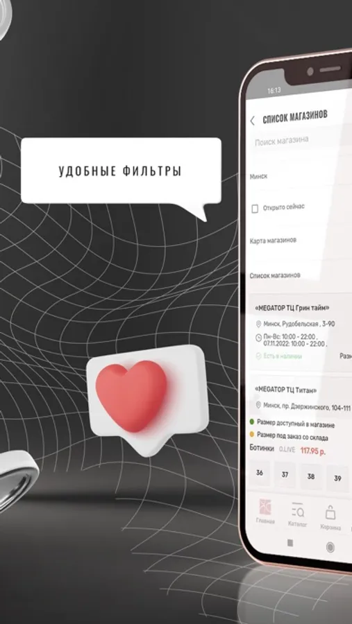 Забронировать и забрать товар более чем в 70 магазинах сети по всей Беларуси.
