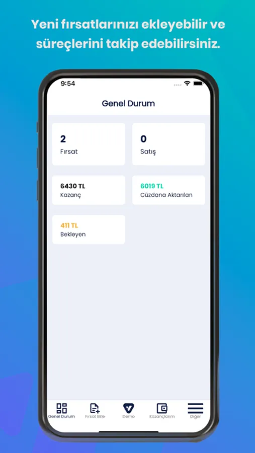 - Yeni fırsatlarınızı ekleyebilir ve süreçlerini takip edebilirsiniz.