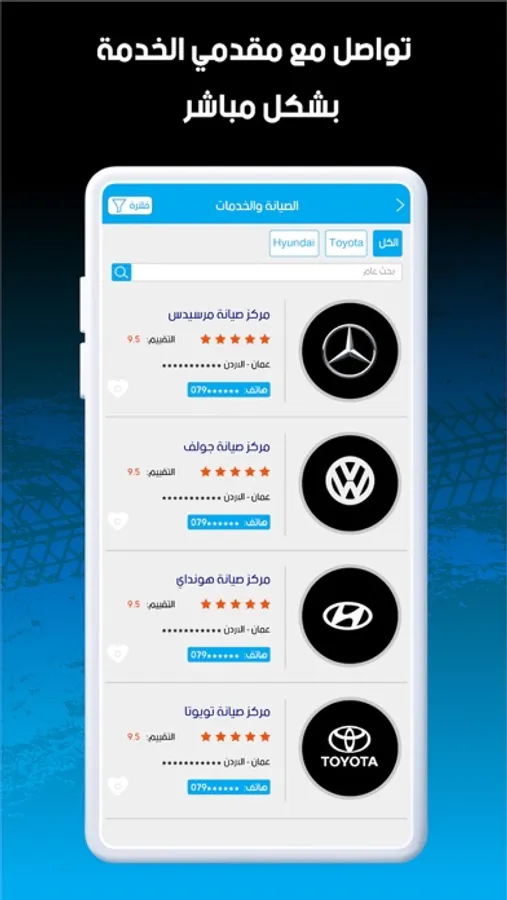 يمكنك الآن البحث والتصفح عن أي مقدم للخدمة من شركائنا المميزين وبسهولة وأسعار منافسة من خلال تطبيقنا .