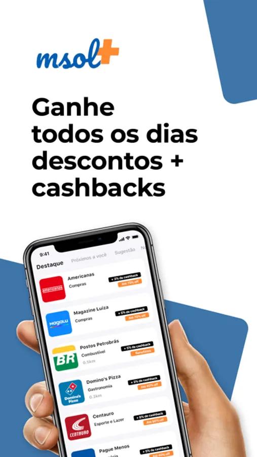 O MSOL + surgiu do nosso compromisso em entregar as melhores experiências aos nossos clientes, agregando descontos, benefícios e cashbacks em todas as suas compras pelo aplicativo.