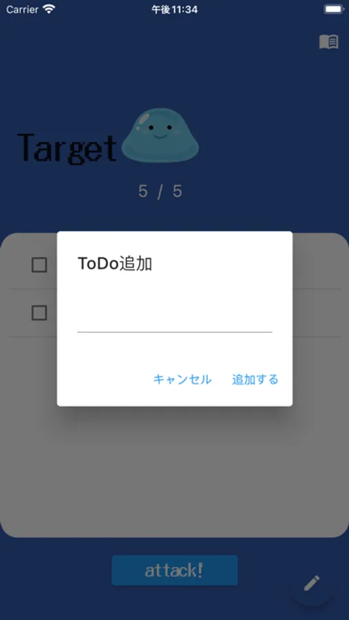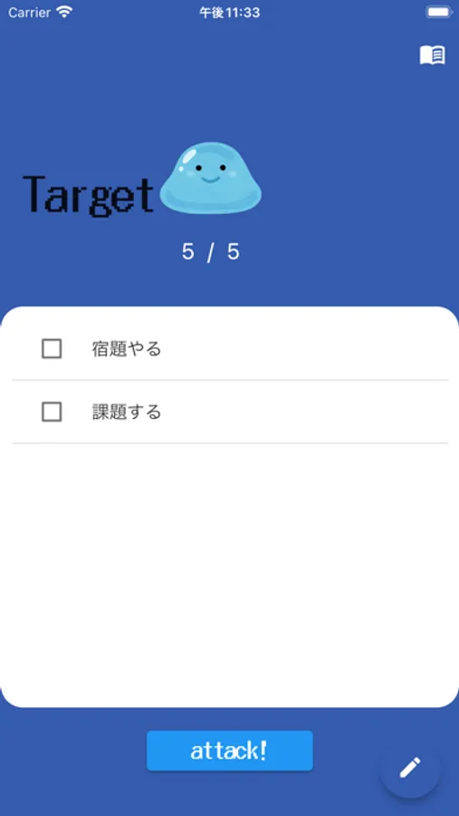 そして、やるべきタスクを3つ追加し、達成すれば「攻撃する」ボタンを押してダメージを与えながらタスクを達成していきましょう!
