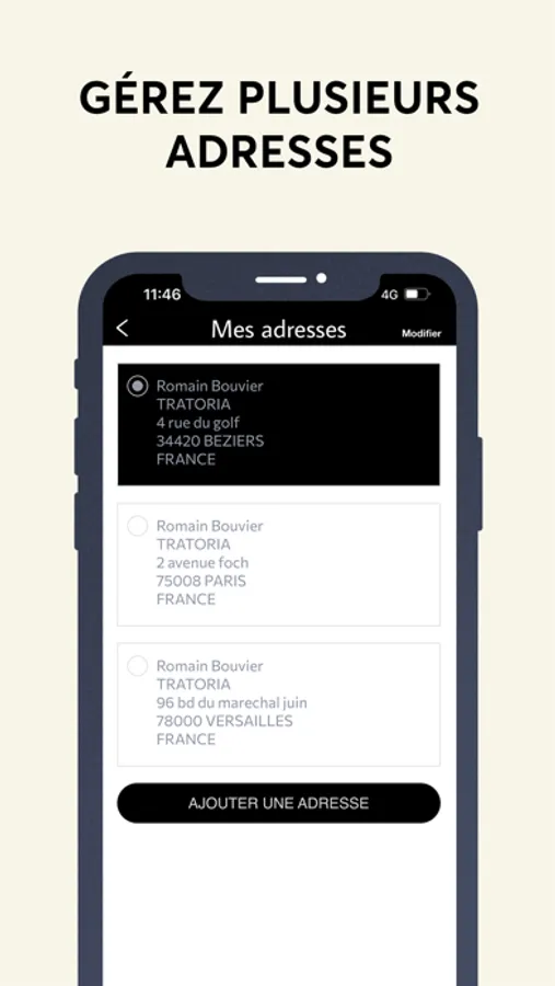 - Gérer plusieurs adresses et moyens de paiement.