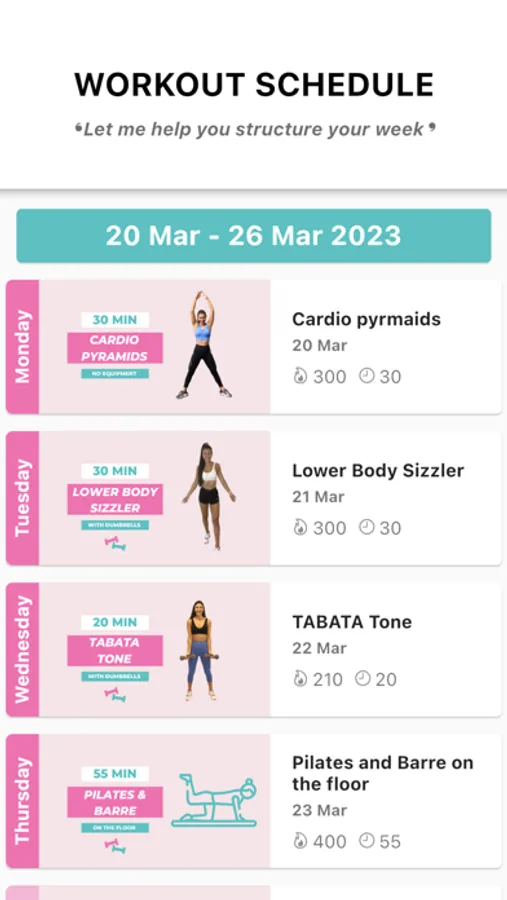 We have a Home page where the app will recommend specific workouts to your ability, show you workouts that are the most popular and workouts that are brand new to the app. We also have a Workout Library filled with over 500 real time workouts that are categorised, and if that isn't easy enough, you can use our new Search bar to find exactly what you are looking for. The most popular feature of this app is our 'Weekly Workout Schedule' where Charlotte puts up a new Monday-Sunday workout schedule every week with brand new workouts, so if you struggle with structure and don't want to waste any more time finding workouts, following these weekly plans could be the key to your new healthy lifestyle!