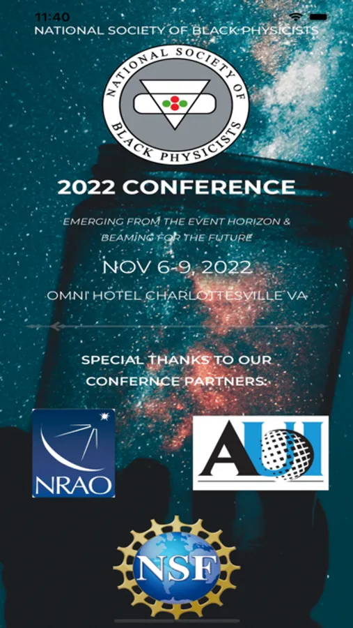 The conference app for the 2022 National Society of Black Physicists Conference in Charlottesville, VA