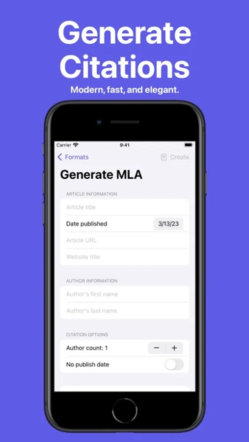 Citations’ user interface was designed to be simple and easy-to-use. Just pick a format, fill out the fields, and tap one button to format the website citation properly. The entire process is seamless and quick, with zero latency or load times. It’s designed beautifully for Apple platforms following Apple Human Interface Guidelines, and has support for the latest Apple technologies like Stage Manager and Live Text.