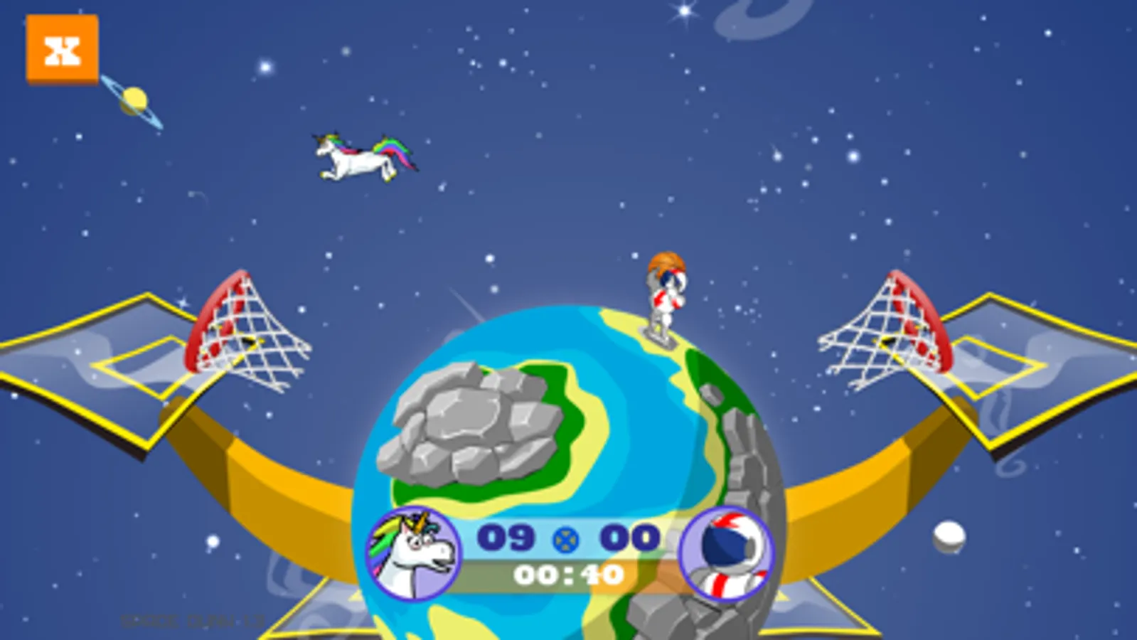 Space Dunk Basketball is a sport casual game with very easy controls. Touch the screen right or left to run in that direction. Swipe up to jump, block and dispute the ball.