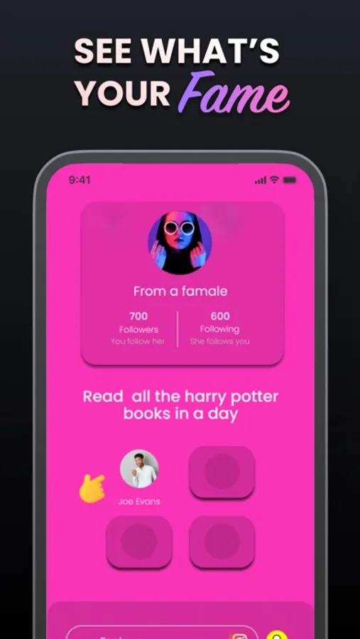 See who likes you and make your friends fame! Fame is an anonymous question-and-answer app where your Instagram friends answer questions about you to make you famaous!