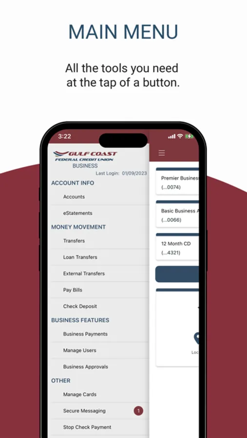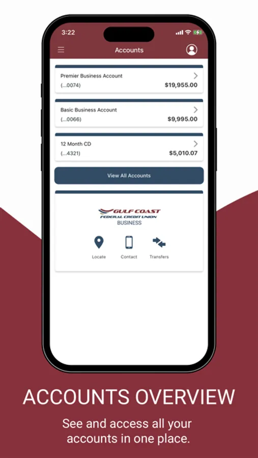 With the Gulf Coast FCU Business Mobile Banking App, you can safely and securely access your accounts anytime, anywhere. Our mobile app is FREE and allows you to: