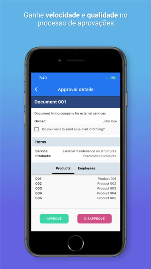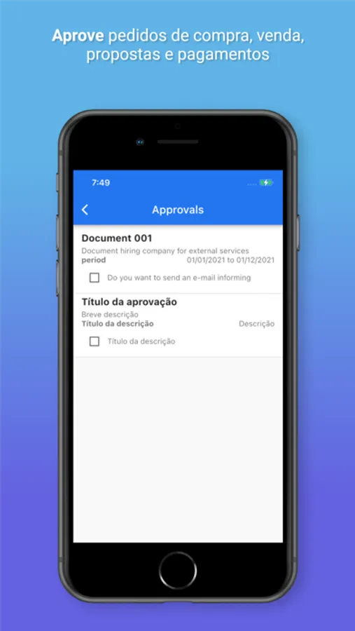 Concentra em um único aplicativo a aprovação de todos os documentos de sua empresa.