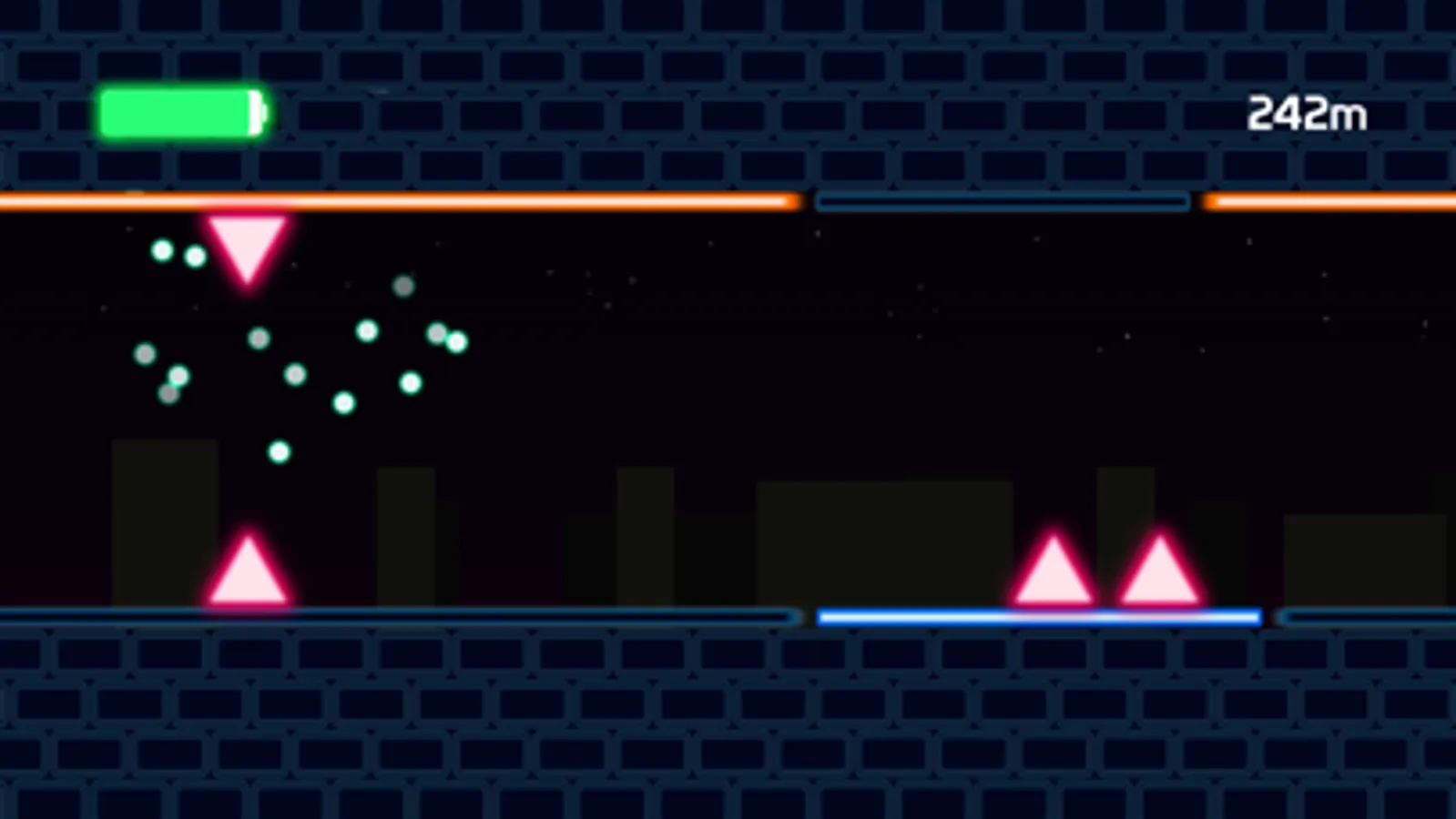 In order to survive, you will need to avoid the evil shining spikes by tapping the screen and changing the whole gravity of the game.