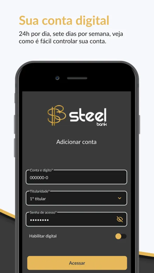 Gostou do app? Lembre-se de deixar uma avaliação! Sua opinião é muito importante para melhorar o Steel Bank cada vez mais.