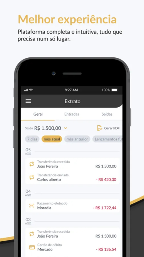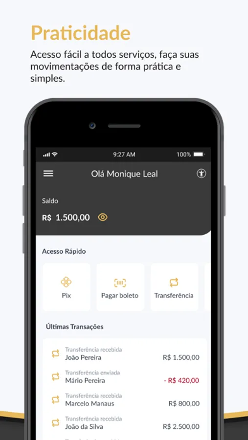 Steel Bank é o seu home banking na palma da sua mão, disponível 24 horas por dia. Você não precisa perder tempo indo na agência se você pode resolver agora mesmo: