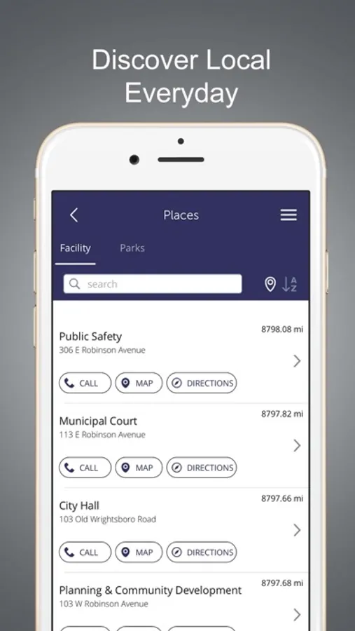 The Government and Departments sections allow you to have all the important contact and destination information in your city with the click of a button. Learn about your city's history, demographics, and elected officials. Find parks, facilities, and points-of-interest along with information, phone numbers, maps, and directions.