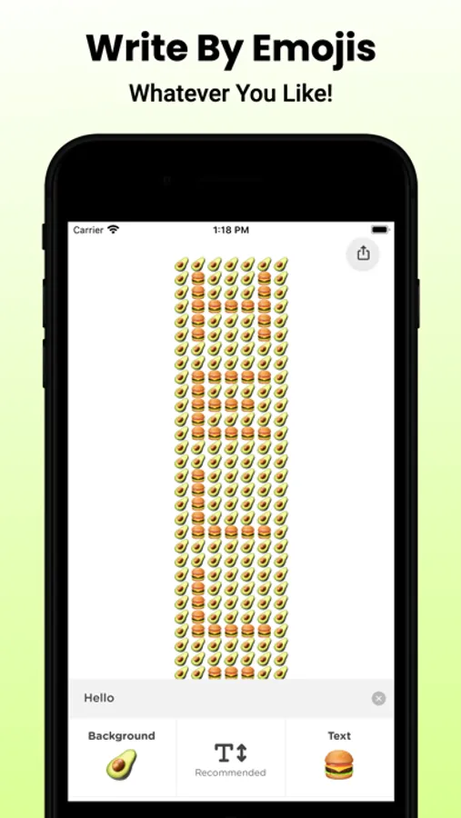 You can type the text you want with emojis thanks to Text Emoji Maker! Write whatever you want with emojis, share to your friends and surprise them! You can write a letter if you want, a name or a sentence if you want.