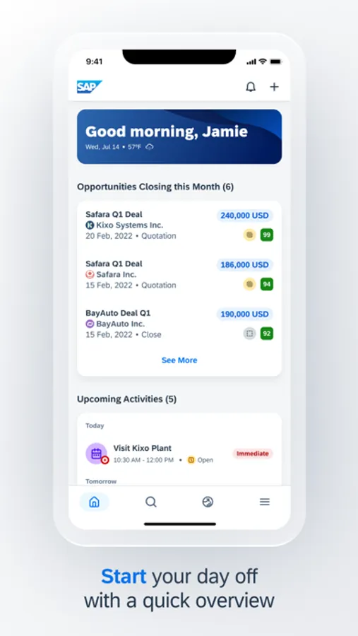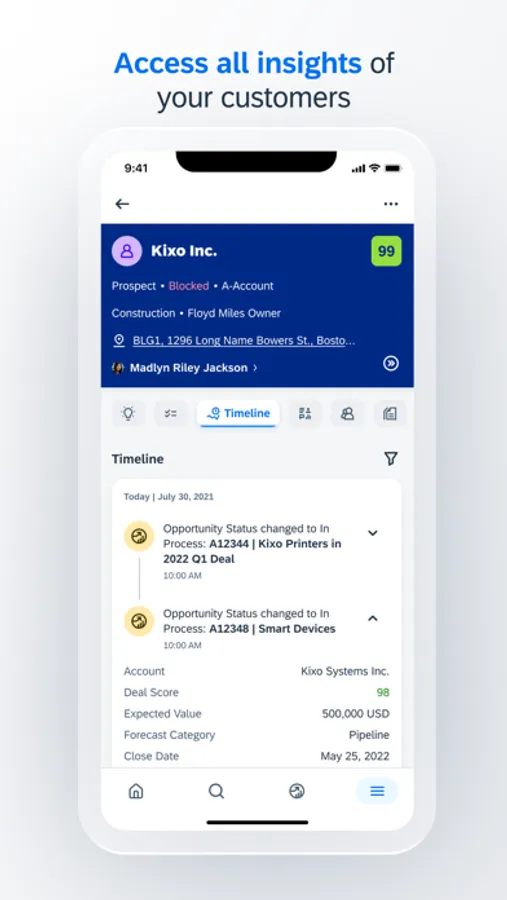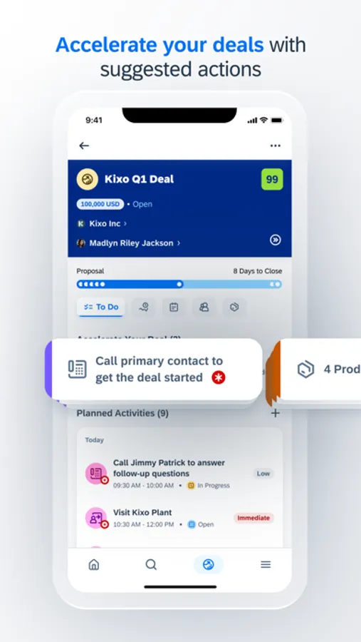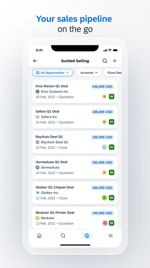 SAP Sales Cloud Mobile Application provides customers access to the SAP Sales Cloud data and allows their salespeople to gain customer insights, collaborate with their team, communicate better with their business network, and make informed decisions right from their mobile devices.