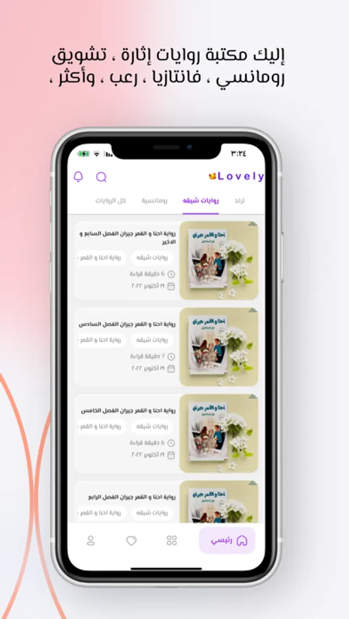 تطبيق قصص و روايات Lovely هو مكان مخصص لمحبي الروايات والقصص المشوقة و لكل عشاق القراءة، جمعنا لك بكل حب اشهر الروايات بكل أجزائها كاملة ، بشكل منظم ومرتب لتقرأ بكل سهولة ويسر ، نشرنا روايات متنوعة مثل