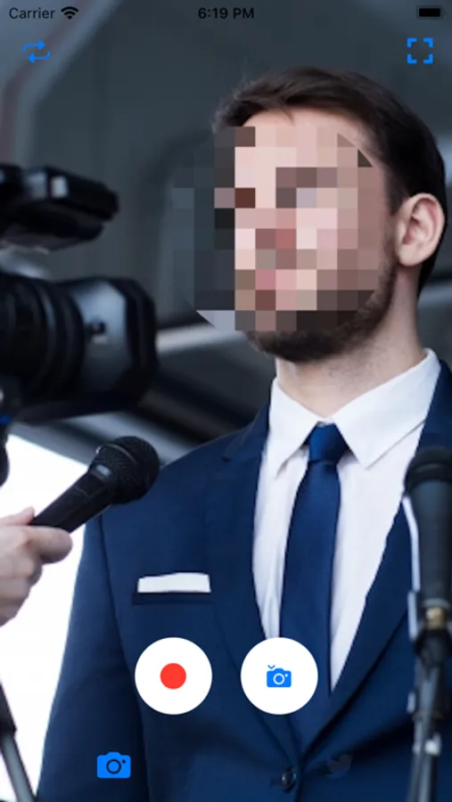 AnonyCam is an effect camera application that reflects mosaic processing like anonymous interviews in real time.