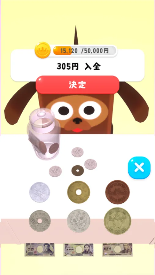 コインやお札の3Dオブジェクトで遊びながら楽しく金額を保存しておくことができます。